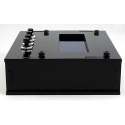 Black Plexiglas housing, for use with a 4*20 LCD display. Also has enough room for a small printed circuit board.